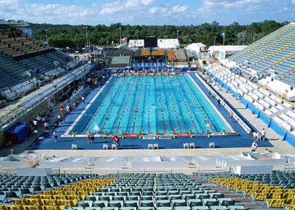 標(biāo)準(zhǔn)游泳池長(zhǎng)50米,寬21米,奧運(yùn)會(huì)世界錦標(biāo)賽要求寬25米,另外還有長(zhǎng)度只有一半即25米的游泳池稱為短池。水深大于1.8米。有8個(gè)泳道,每道寬2.5米,邊道另加0.5米,兩泳道間有分道線,分道線用浮標(biāo)線分掛在池壁兩端,池壁內(nèi)設(shè)掛線勾,池底和池端壁應(yīng)設(shè)泳道中心線,為深色標(biāo)志線。出發(fā)臺(tái)應(yīng)居中設(shè)在每泳道中心線上,臺(tái)面50厘米×50厘米。臺(tái)面臨水面前緣應(yīng)高出水面50至70厘米,臺(tái)面傾向水面不應(yīng)超過(guò)10度。游泳池的池岸寬一般出發(fā)臺(tái)端不小于5米,其余池岸不小于3米。正式比賽池,出發(fā)臺(tái)池岸寬不小于10米,其他岸寬不小于5米。