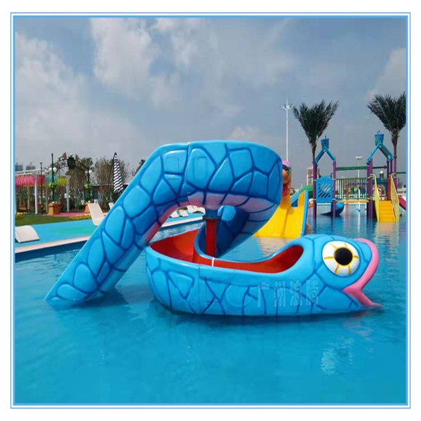 蛇形滑梯LT-XS1702設(shè)計(jì)獨(dú)特,藍(lán)色蛇身點(diǎn)綴深藍(lán)色菱形鱗片。宛如一條藍(lán)色大蟒蛇盤旋于戲水池中間。是水上樂園設(shè)備戲水小品中人氣項(xiàng)目之一,十分受小朋友青睞,蟒蛇的外形設(shè)計(jì),奕奕如生,讓小朋友感覺是騎在蟒蛇背上滑下來,刺激又好玩。