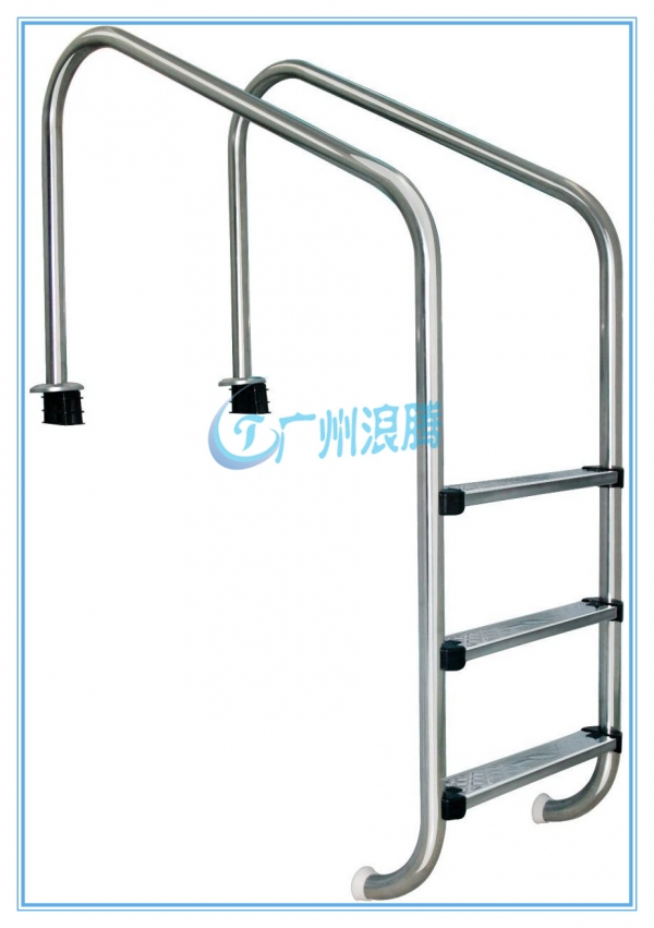 泳池設備-扶梯采用全304不銹鋼制造,款式新穎,結構合理,外形美觀,優美的曲線設計, 表面光滑, 無任何瑕疵配有固定裝置。適合各式泳池使用,規格由二級至五級不等。