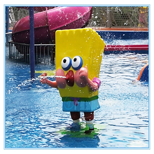 水上樂園設備海綿寶寶噴水LT-XP123以動畫片《海綿寶寶》里的角色造型設計,在動畫片里海綿寶寶總是能給平靜的世界制造麻煩,雖然鬧出一些笑話,不過他總能擺脫困境,然后又制造出新的麻煩。如此性格與我們現實生活中的小孩簡直一模一樣,因此得到眾多小朋友的喜歡。這樣一款設備當然是非常適合在水上樂園兒童戲水池中作為戲水設備。還可以當做一個景觀擺設,用于吸引人氣。